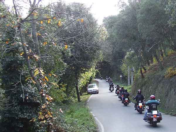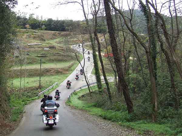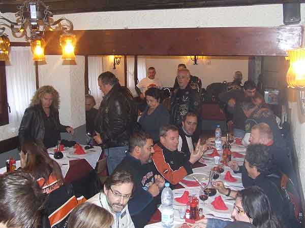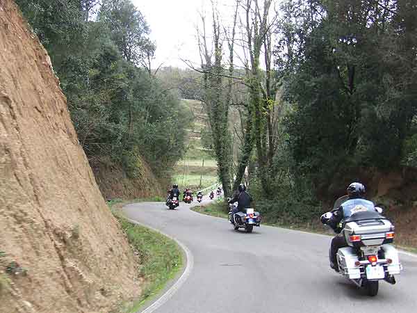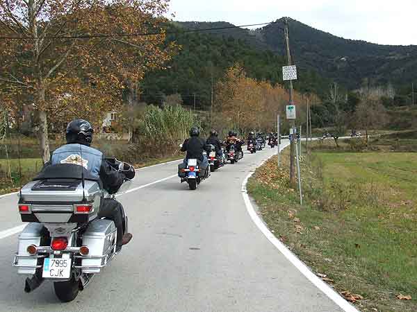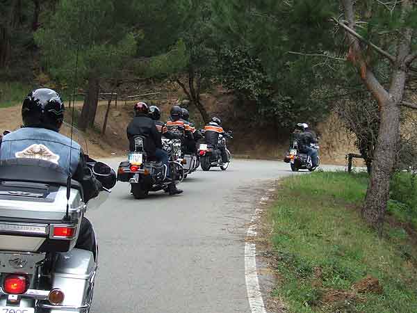 Hacia las 13 horas subimos en nuestras Harleys para marchar. Parte del camino de vuelta lo hicimos en grupo y después cada uno se fue desviando hacia sus domicilios. Como anécdota decir que María, la mujer de Pere Morcillo, uno de nuestros Jefes de Ruta, sufrió un ligero mareo debido al excesivo número de curvas y durante el desayuno se encontró indispuesta. Todo lo demás se paso con nota alta.